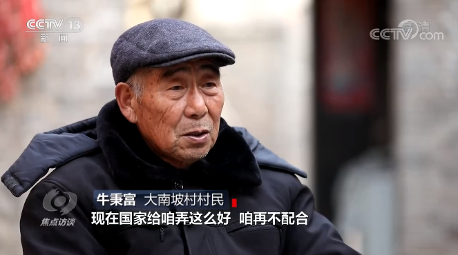 大南坡村村民 牛秉富:我说良心话,国家给咱们投这资,不能叫公家的钱白花了,现在国家给咱弄这么好,咱再不配合,这对不起国家,对不起党。