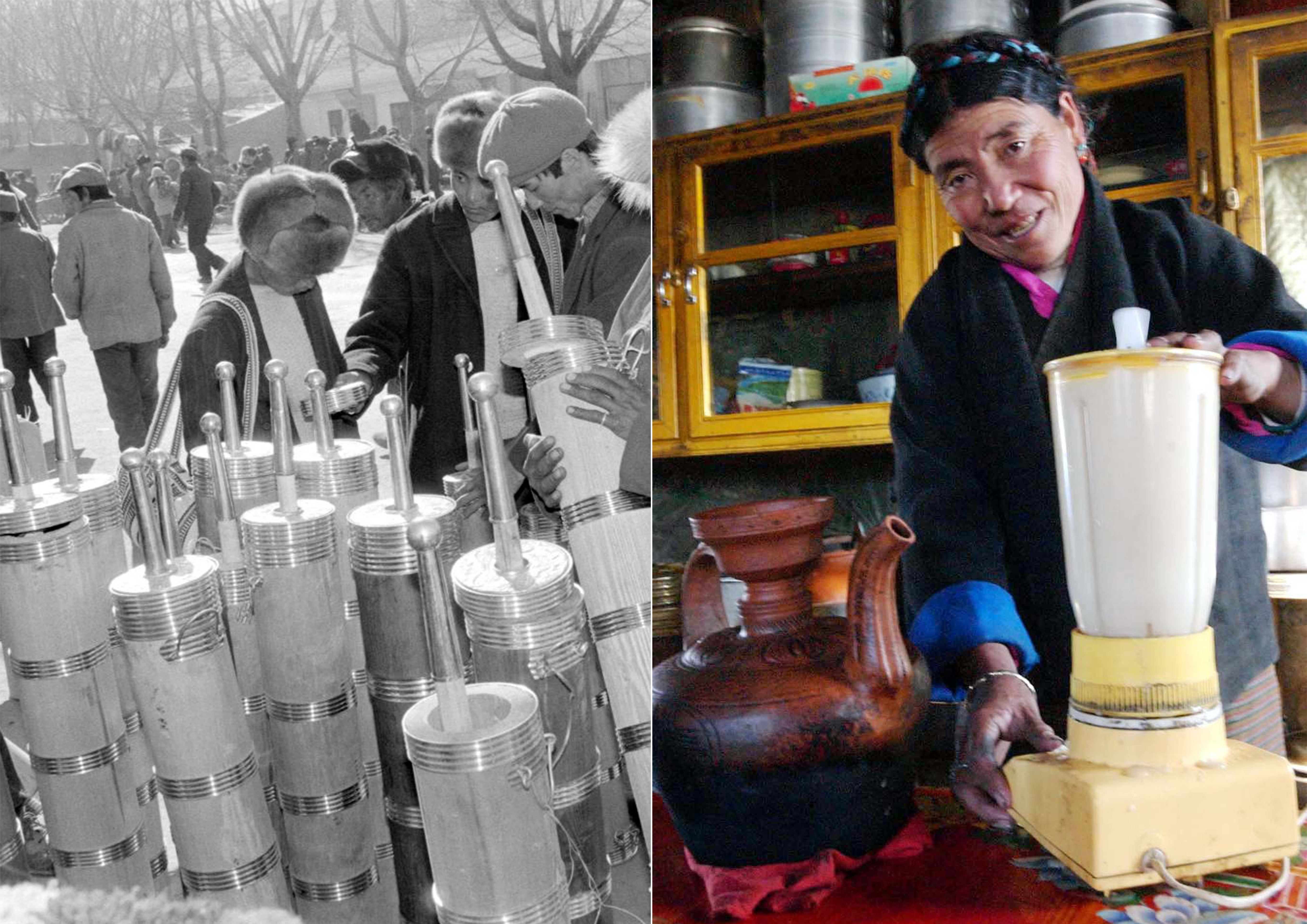 如今,只需轻轻一按开关,电动酥油搅拌机就能制作出醇香可口的酥油茶。