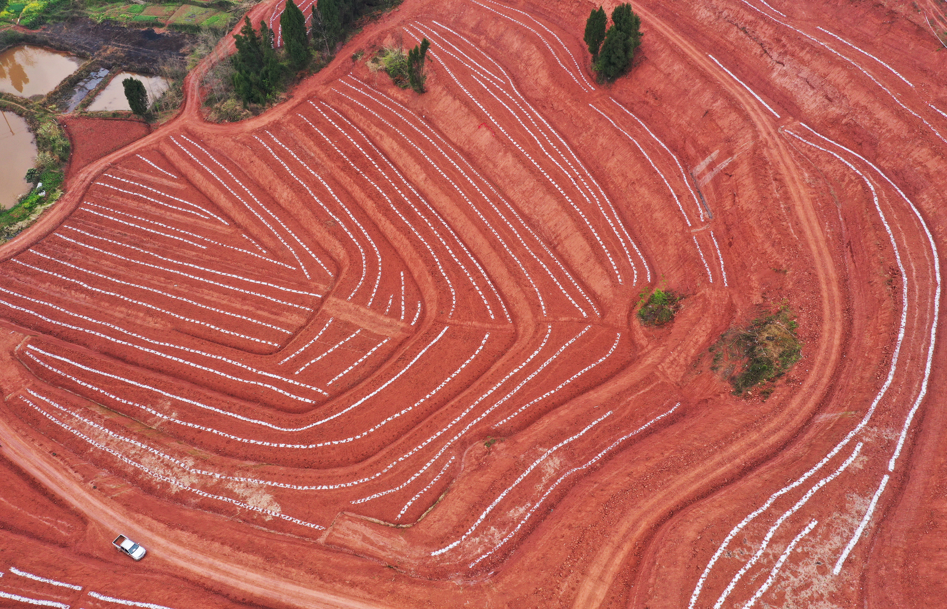 蹲下身,全清杰细致地查看刚栽种的南瓜幼苗。幼苗上铺着一层保持土壤的盖布,在山上蜿蜒成一条条白色的长带。镇上的百姓都盼望,到了秋天,这里能变成一片橙绿相间的丰收景象。