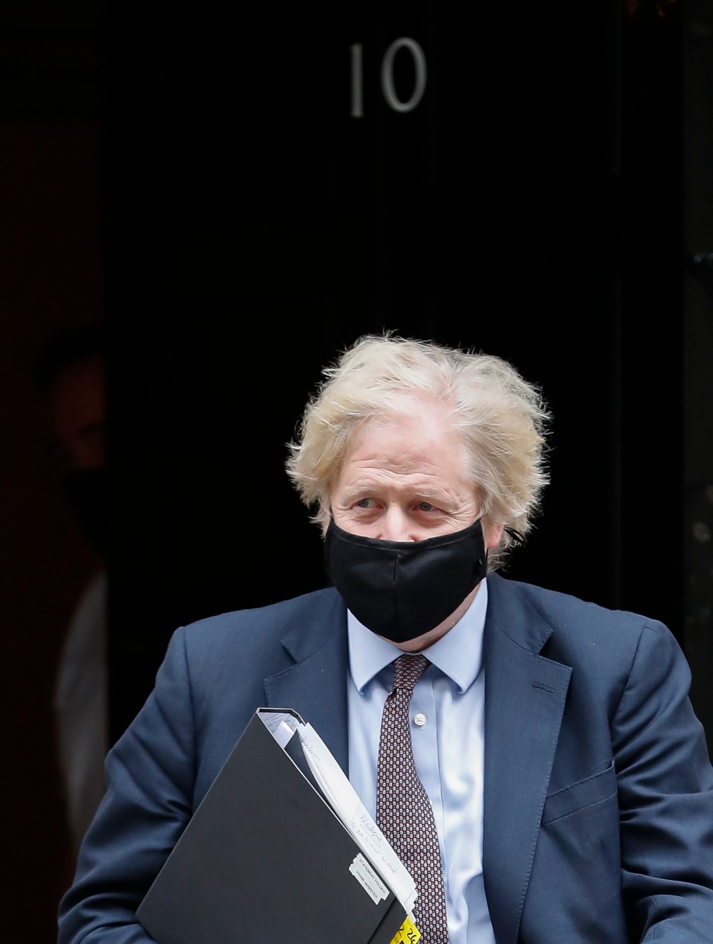 3月16日,英国首相鲍里斯·约翰逊离开位于英国伦敦唐宁街10号的首相府准备前往议会。(新华社记者韩岩摄)