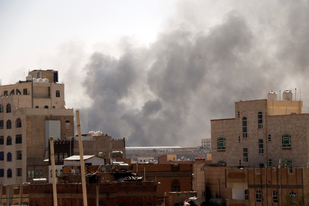 3月7日,也门首都萨那城区上空升起黑烟。沙特阿拉伯领导的多国联军当日空袭了胡塞武装位于也门首都萨那中心城区的一座军营,至少造成3人受伤。(新华社发,穆罕默德摄)