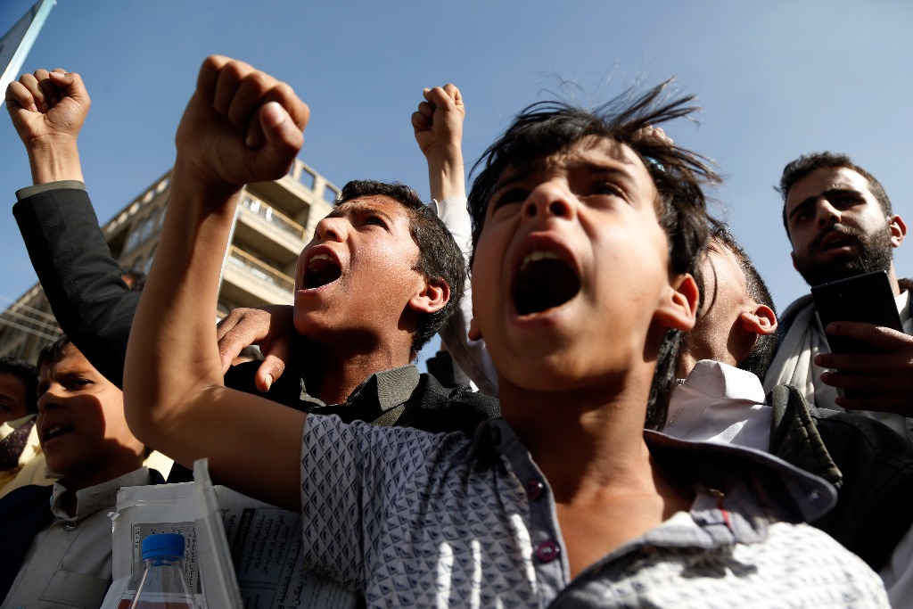 3月26日,在也门首都萨那,民众集会抗议由沙特主导的多国军事介入6周年。(新华社发,穆罕默德摄)