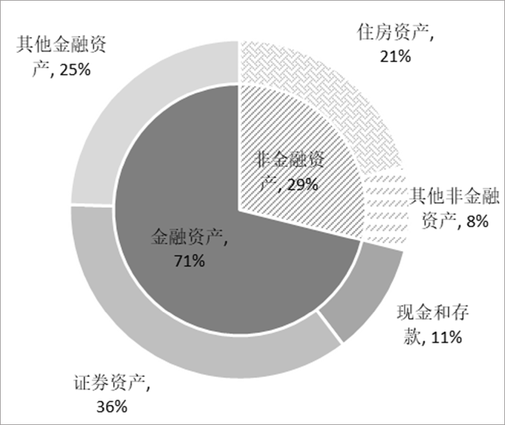 而由于美国金融市场较为成熟,该国居民将其积累财富的70%以上用来配置各种类型的金融资产,证券类资产又在金融资产中占据了主导地位(见图4)。