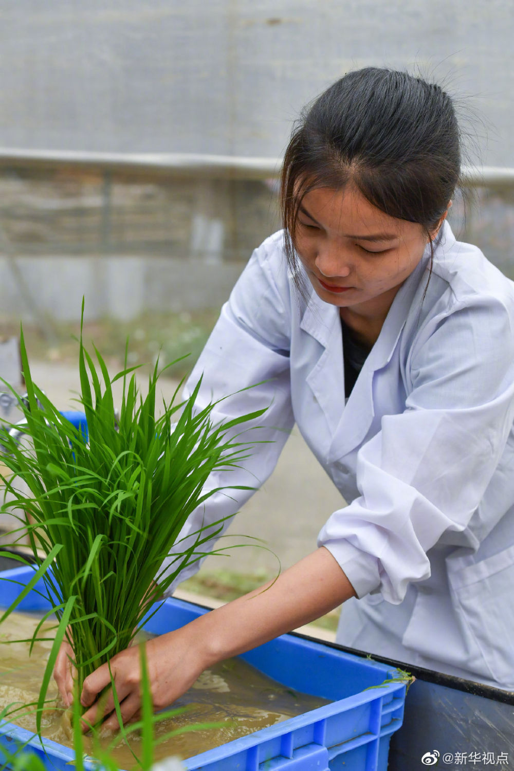 上午8时左右,华南农业大学国家植物航天育种工程技术研究中心王加峰博士带领团队4人开始在温室拔秧,拔下的秧苗被放到若干烧杯里面,经过50分钟左右的车程来到位于广州增城的华南农业大学试验田基地。