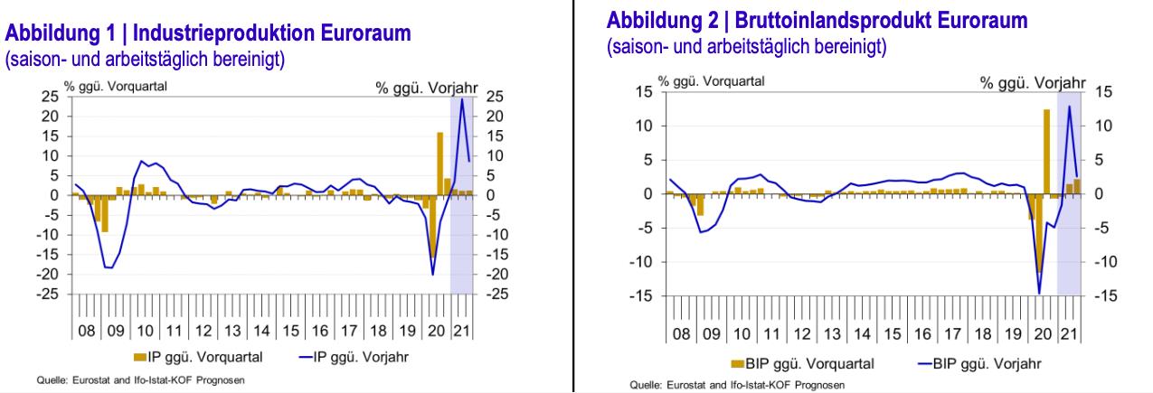 △欧元区工业生产和经济产出预期(图片来源:欧洲三大研究机构)