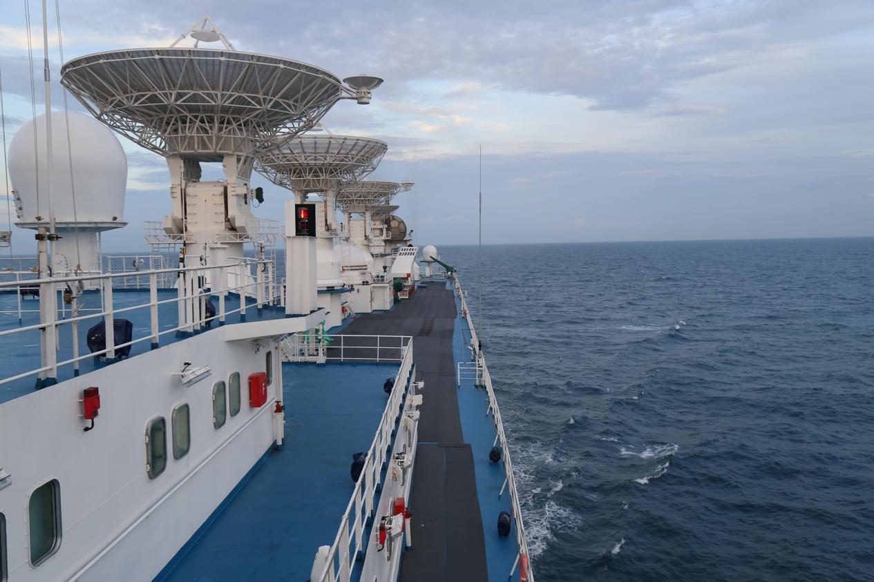 第一次执行海上测控任务的气象预报员雷宇鑫感受颇深。他说:“在近三个月的航程里,我感受到了天空的浩瀚、大海的广阔和航天事业的光荣与神圣,更加清楚了自己肩上的职责和使命。我期待下一次出航,逐梦海天、追星揽箭,为中国梦航天梦贡献力量。”