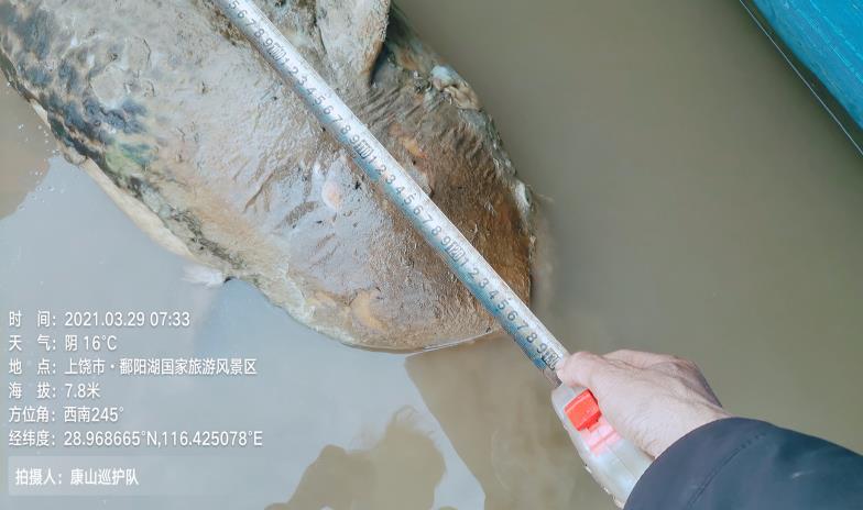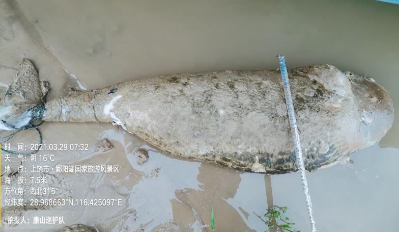3月29日上午7:30左右,江豚保护志愿者在江西鄱阳湖余干县康山水域发现一头死亡江豚。据发现江豚的巡护队队长介绍,这头江豚长约1.28米、宽28厘米,发现时已腐烂,其尾部被废弃的渔具缠绕多圈,疑似被渔具困住导致溺亡。