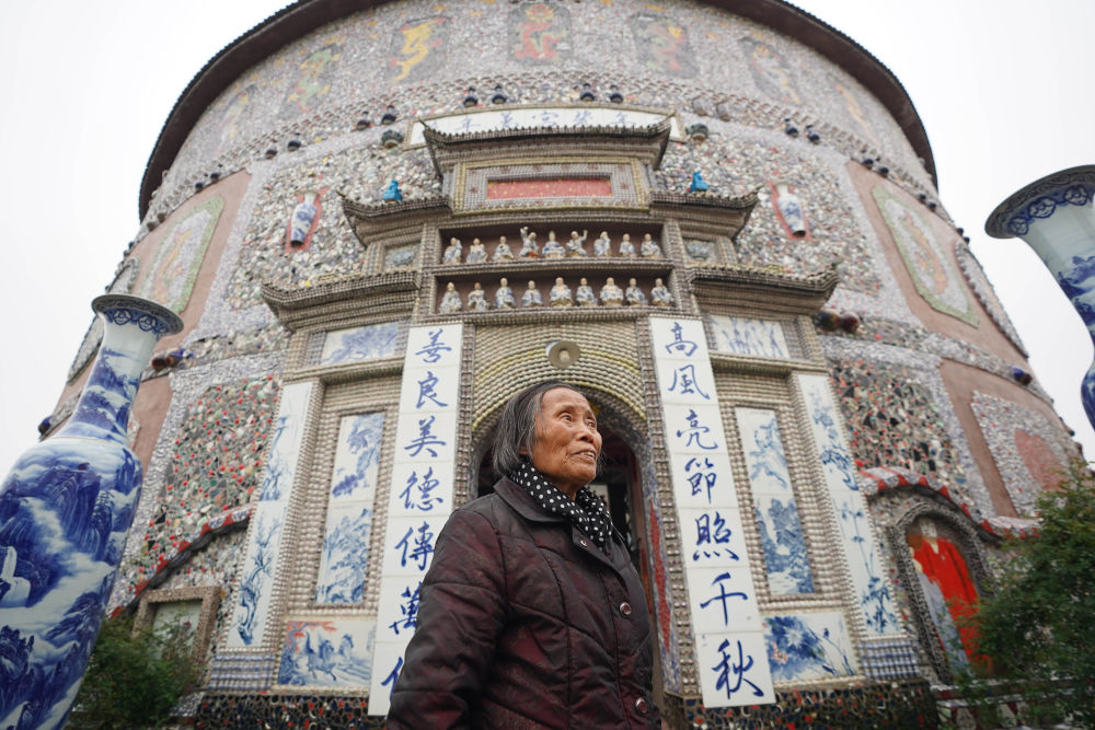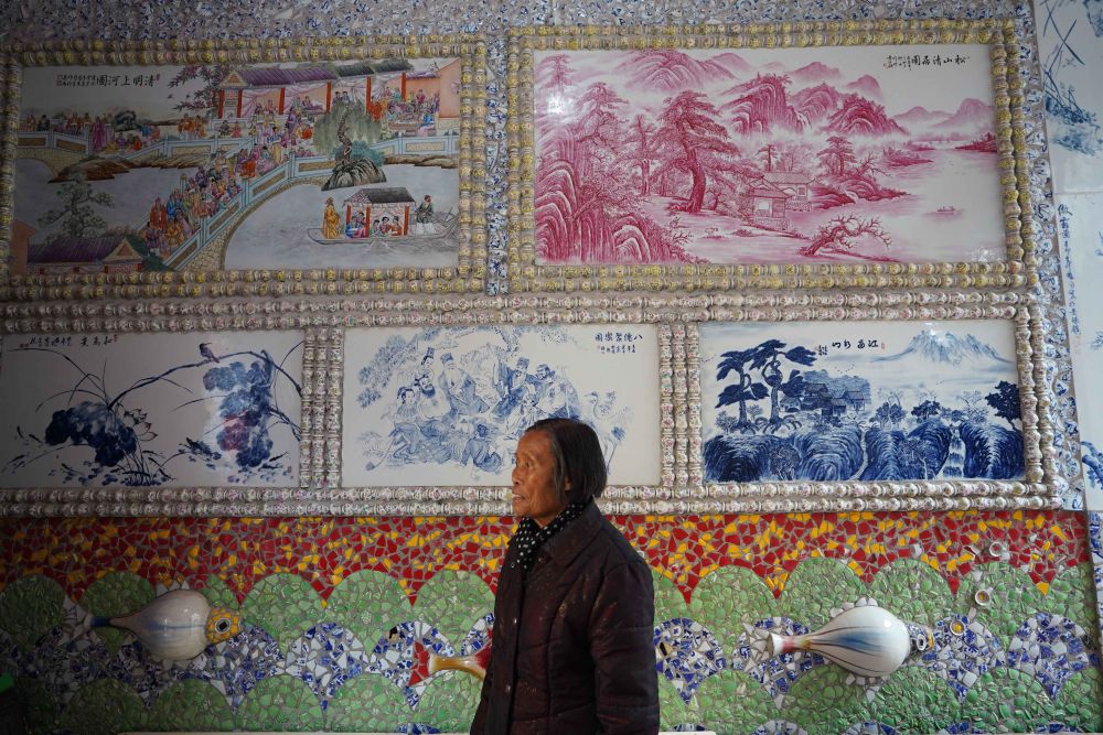 待游人离去,余二妹迈着并不轻快的步伐,缓缓抬起手,抚摸着墙上透亮的瓷片,嘴里念叨着,哪里还需要完善。她说,即便是今后“折腾”不动了,也要一直留在这“瓷宫”旁,“能看见,也就安心了”。