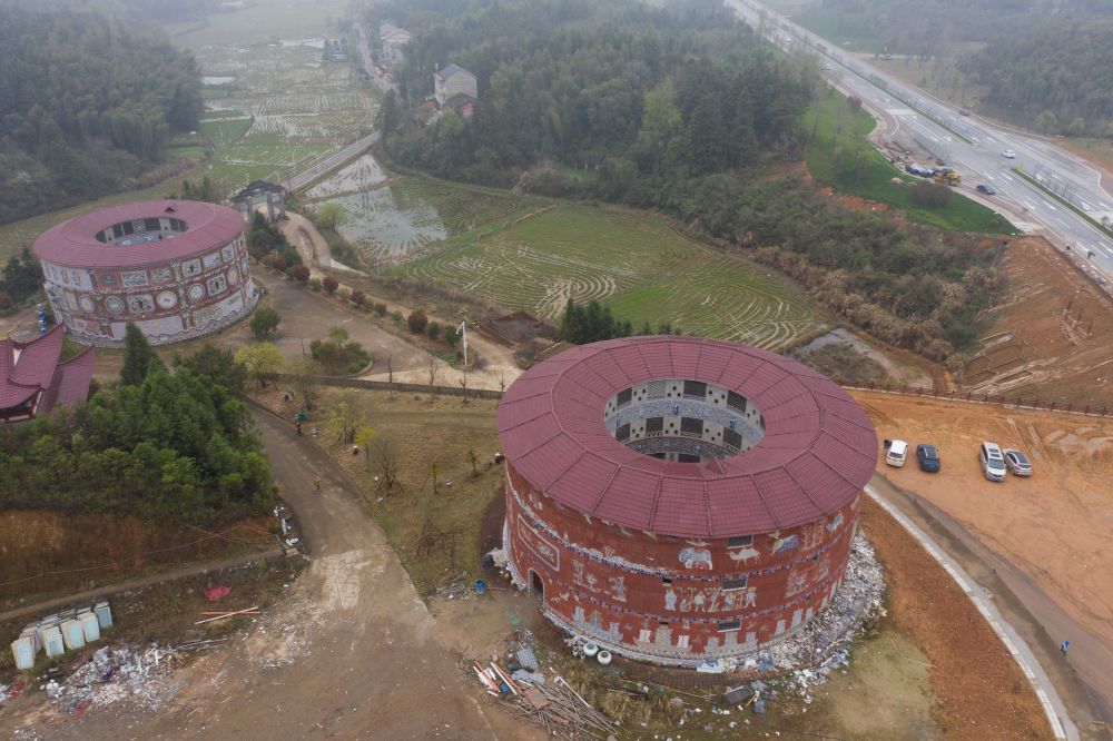 距景德镇市中心三十余里的浮梁县新平村,马路边一处高地上伫立着几座五彩斑斓的建筑。它们以瓷为衣,似围屋、似宝塔、似宫殿,看一眼便无法忘怀。