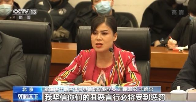 新疆喀什地区泽普县教培结业学员 迪丽娜尔·卡哈尔:在这里,我想对那些造谣者说,你们整天胡说八道,靠诋毁教培结业女学员的名誉,来达到自己不可告人的目的,你们不感到羞耻吗?良心不痛吗?善有善报、恶有恶报,我坚信你们的丑恶言行必将受到惩罚!