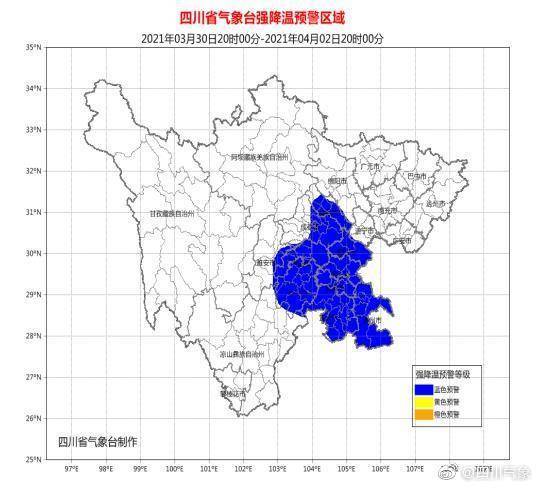 【四川省气象台3月30日16时发布强降温蓝色预警】