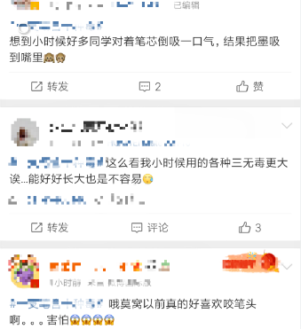 网友:小时候经常“吸墨”