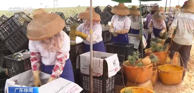 央视网消息:眼下,广东徐闻县的35万亩菠萝开始了大规模采摘,今年的徐闻菠萝不仅好卖,价格还不错,农民喜获丰收。