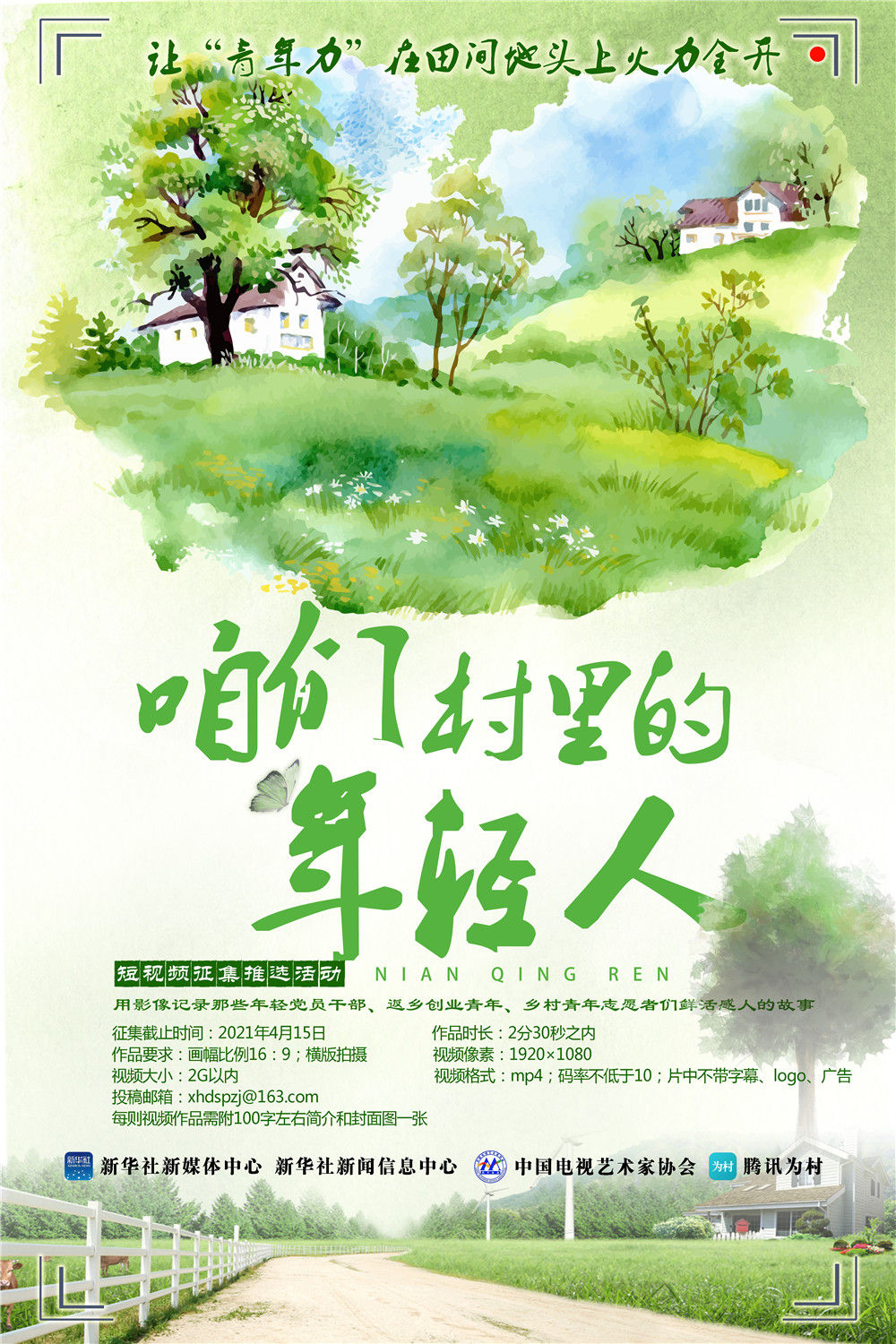 由新华社新媒体中心、新闻信息中心主办,联合中国电视艺术家协会、腾讯发展研究院腾讯为村客户端开展的“全国市县电视台优秀电视节目——‘咱们村里的年轻人’短视频征集推选活动”开始啦。