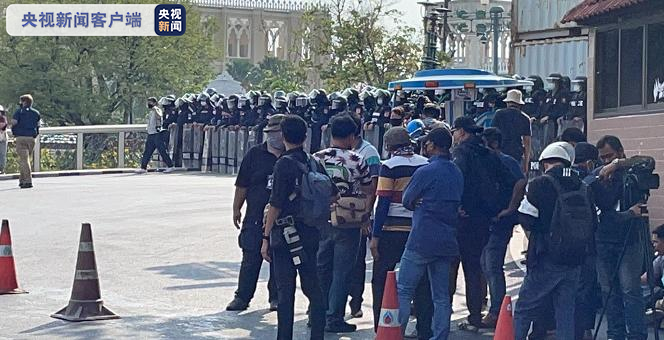泰国内阁在总理府举行就职仪式的当天下午,泰国总理府外,反政府示威者举行集会,警方驱散并逮捕90余人。(总台记者 陈林聪 王风华)