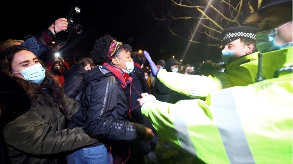当地时间3月3日,莎拉·埃弗拉德在伦敦南部克拉珀姆步行返家时失踪,一名英国在职警察被控将其杀害,此事引发了英国国内对于女性安全和性侵犯的全国性辩论。当地时间3月13日,全英各地计划进行多个守夜活动,但伦敦警方以新冠疫情为由限制案发地克拉珀姆的守夜活动,原定在克拉珀姆进行的守夜活动被取消。当天晚上,有大量民众在克拉珀姆一个临时纪念碑前聚集数小时,警方强行将悼念人群驱散从而爆发冲突。(总台记者 康玉斌)
