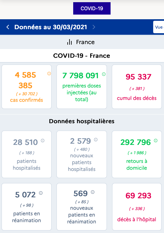 根据法国政府网站30日公布的数据,法国24小时新增确诊病例30702例,累计4585385例。