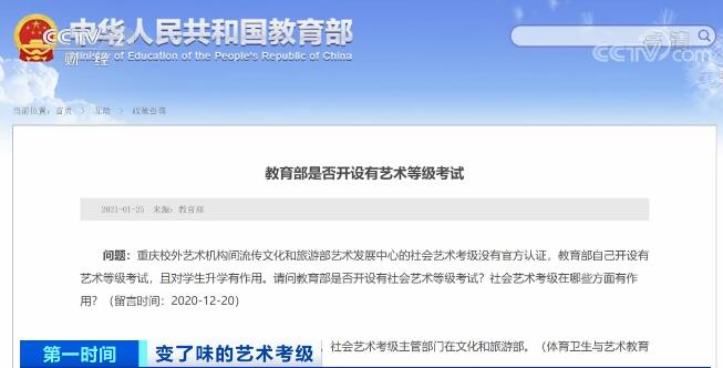 而记者发现,教育部明确不鼓励青少年参加社会艺术类考级,在一些大学的高水平艺术团招生中,业余艺术考级证书也只是作为参考条件之一,并不能直接加分。但培训机构为了吸引生源,还是把考级和升学加分作为噱头,一些机构的网站上“考级加分”的字样被标注在显眼的位置。
