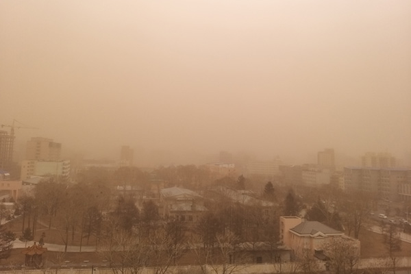 2021年3月14日,沙尘暴中的蒙古国乌兰巴托。图|新华社