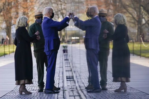 参考消息网3月31日报道 据美联社消息,美国总统乔·拜登和第一夫人吉尔·拜登3月28日参观了越战纪念碑,以纪念最后一批美国作战部队离开越南战区48周年。3月29日是全国越南战争退伍军人日。拜登夫妇献上了一束鲜花,并站立默哀。据白宫方面说,总统随后用手在越战纪念碑上勾画了丹尼斯·F·夏因的名字。夏因来自马萨诸塞州,1969年21岁时在越南阵亡。