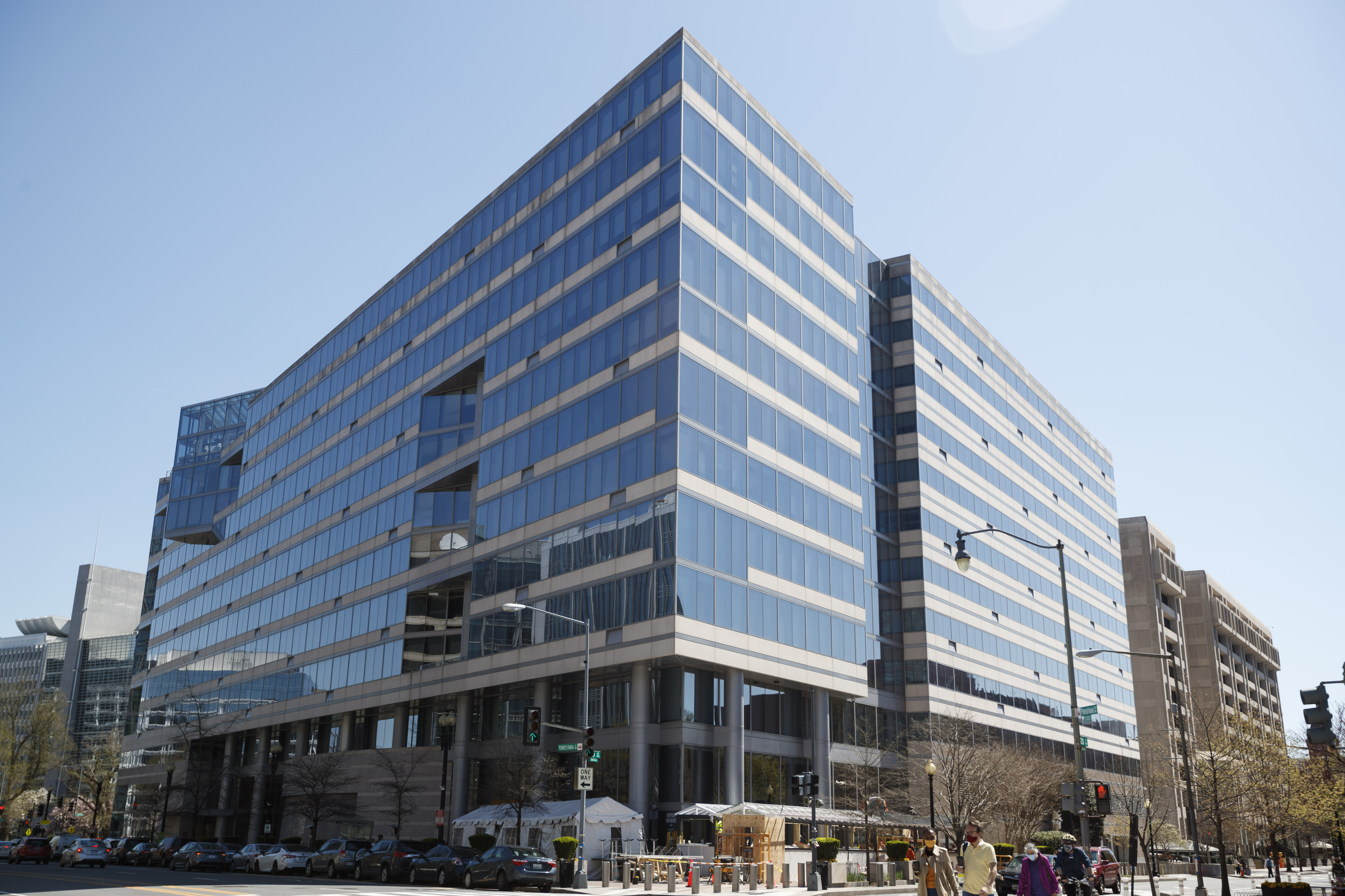 这是3月30日在美国华盛顿拍摄的国际货币基金组织总部大楼。(新华社发,沈霆摄)