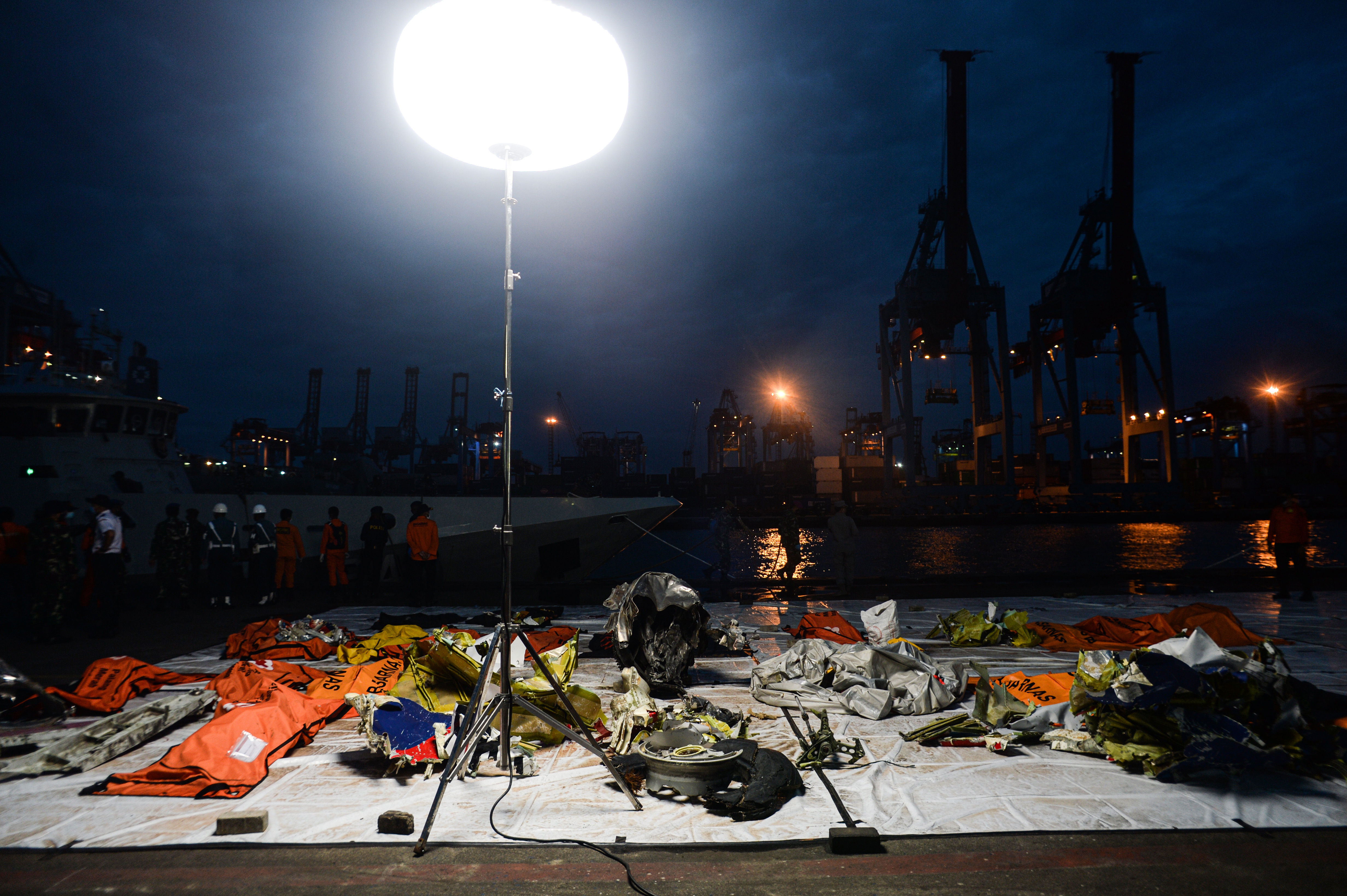 1月13日在印度尼西亚雅加达丹戎不碌港拍摄的失事客机残骸和遇难者遗骸。(新华社发,阿贡摄)