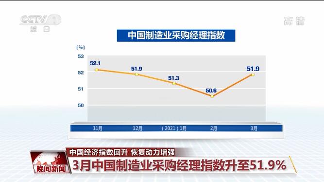 央视网消息:中国物流与采购联合会、国家统计局3月31日公布3月份中国制造业和非制造业采购经理指数,显示近期我国产业链联动回升,经济恢复动力增强。