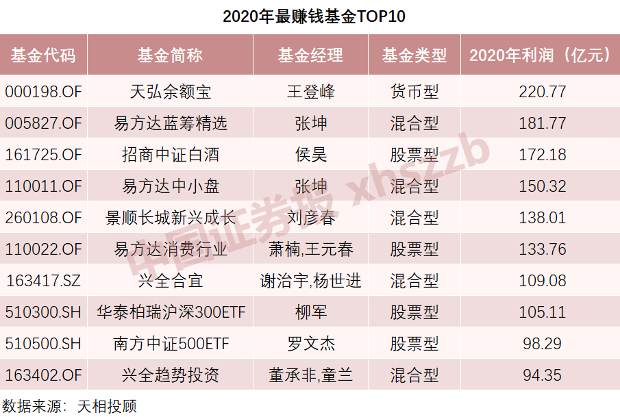 新华社北京4月1日电(中国证券报记者王宇露)公募基金2020年给基民到底赚了多少钱?近2万亿元!首位管理规模超千亿的顶流基金经理张坤,一个人就为基民豪赚400亿元。