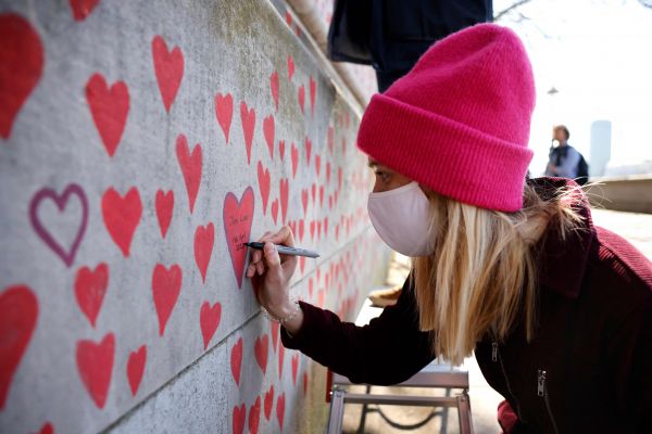 参考消息网3月31日报道 据英国《每日邮报》网站3月29日报道,为了纪念英国新冠肺炎大流行的受害者,死者家属们正在议会大厦对面的墙上绘制一幅由15万颗心组成的大型壁画。