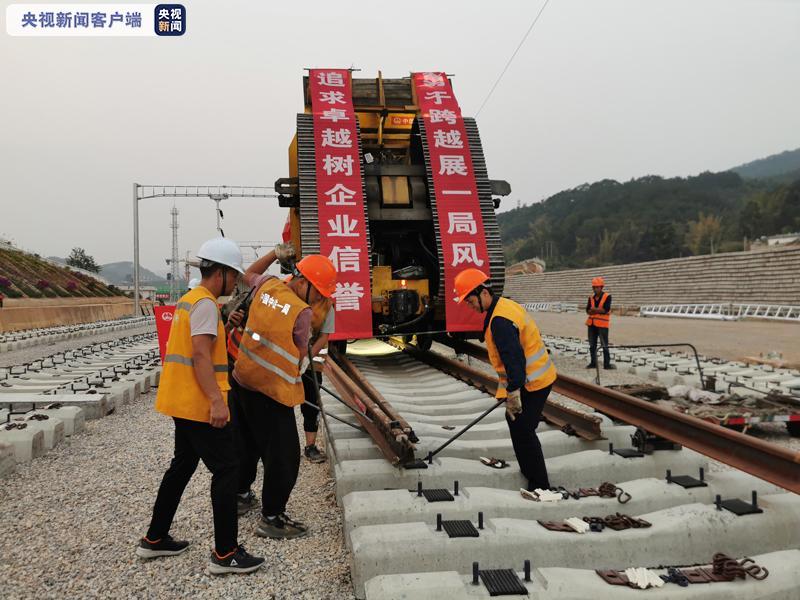 中铁一局玉磨铁路项目部总工程师任福中介绍,工程采用两台铺轨机上下行线路同时铺轨,今年2月中旬开始增加磨憨至玉溪方向反向人工铺轨作业,昼夜施工,确保铺架有序推进。这次铺轨抵达宁洱,把玉溪和宁洱两个铺架基地联通,畅通了钢轨和路料运输通道,为后续加快铺架创造了有利条件。