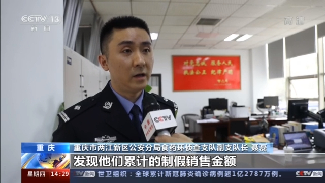 重庆市两江新区公安分局食药环侦查支队副支队长 聂磊:前期的侦查和后面我们的搜查,包括组证发现他们累计的制假销售金额,生产销售金额高达二十亿元。