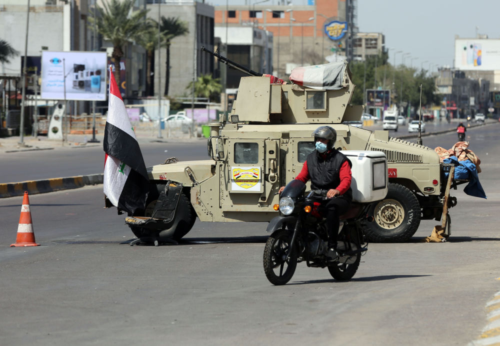 3月19日,军车在伊拉克巴格达街头执勤。(新华社发,哈利勒·达伍德摄)
