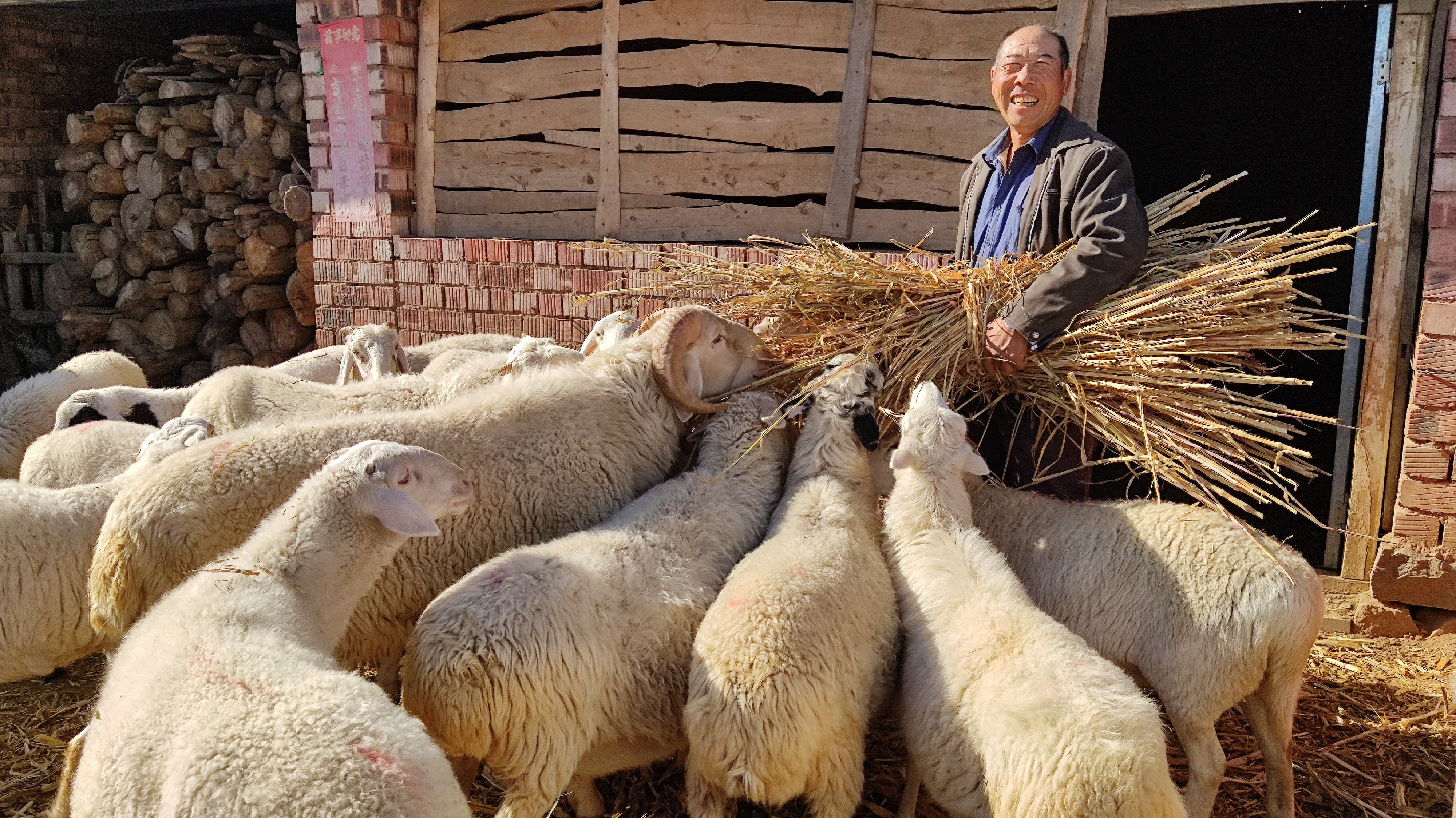 村民在给羊投喂饲料。受访者供图