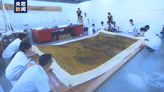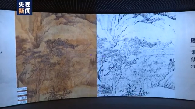 不同以往的是,故宫博物院此次对尺幅如此巨大、病害情况如此严重的书画类文物,通过“无损伤况勘察技术”“多光谱检测分析”等手段,揭示矿物原料分布情况和薄厚差异。
