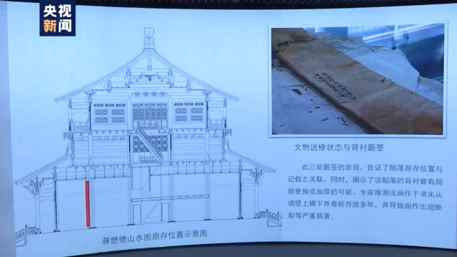 昨天(31日)下午,故宫博物院对外发布,首次成功修复符望阁最大山水贴落《蒋懋德画山水图贴落》。从最开始时“几乎难以打开”,到经过修复师精修后重获新生,《蒋懋德画山水图贴落》修复中都应用哪些新手段和新方法?