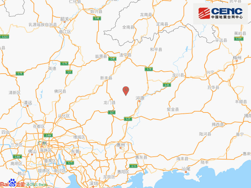 广东河源市东源县发生3.7级地震 震源深度10千米
