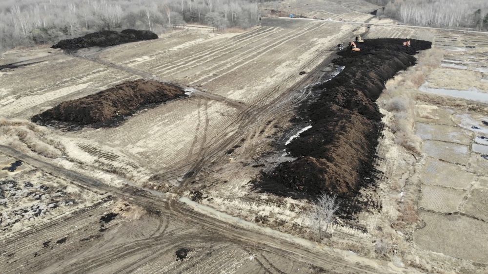 3月29日,记者驱车来到五常市沙河子镇福太村,远远看到路旁耕地上一座座黑土堆成的连绵小山。