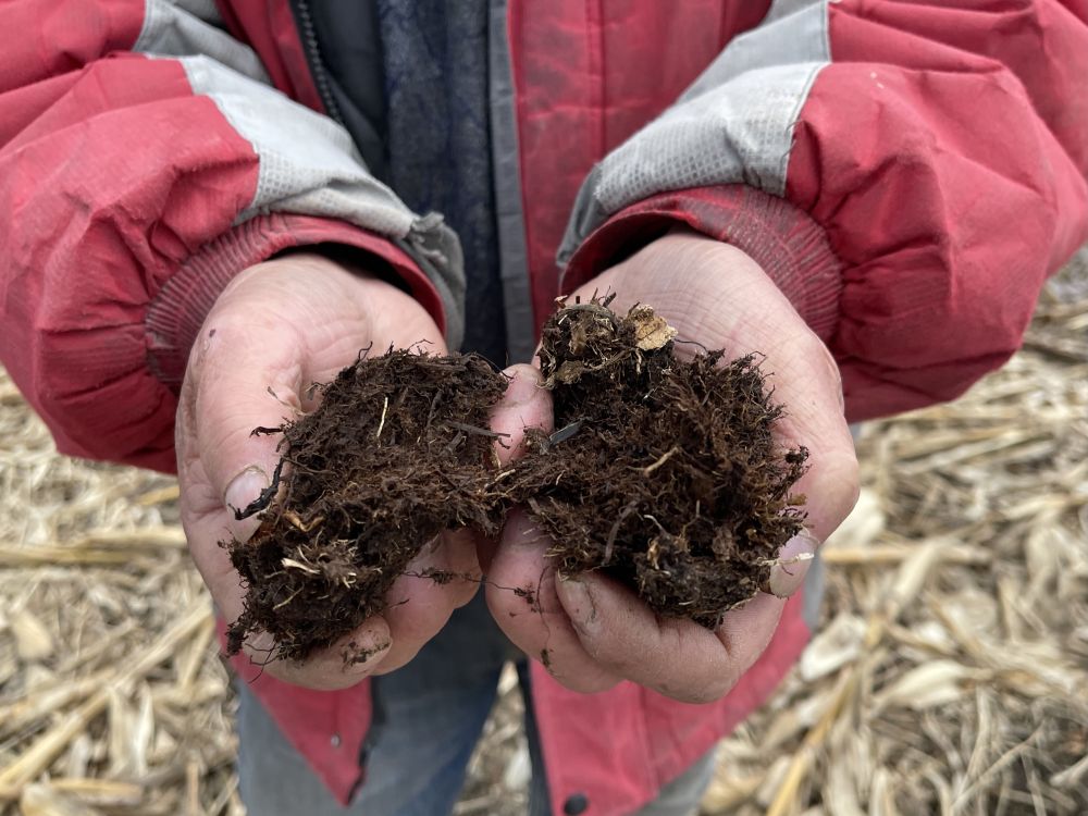 3月28日,黑龙江省五常市沙河子镇福太村村民,向记者展示被盗挖的黑土。(新华社记者杨思琪摄)