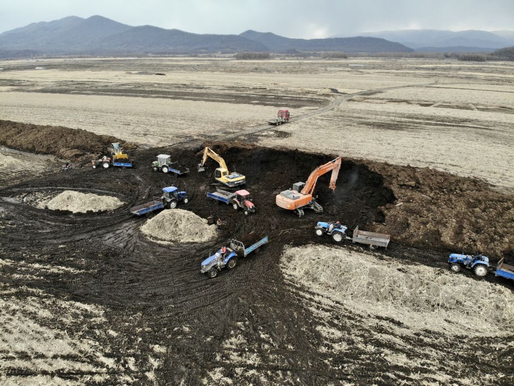 3月29日,在黑龙江省五常市沙河子镇福太村,工作人员在回填被盗挖的黑土。(新华社记者马知遥摄)