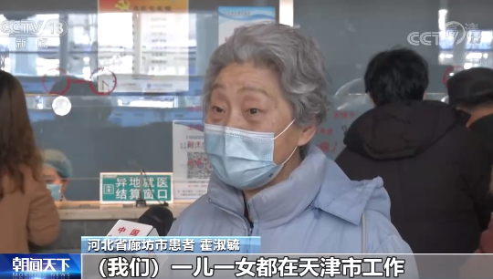 河北省廊坊市患者 霍淑毓:我们一儿一女都在天津市工作,我们就跟着他们来到天津,有了门诊直接结算政策,我们不用跑回廊坊报销。