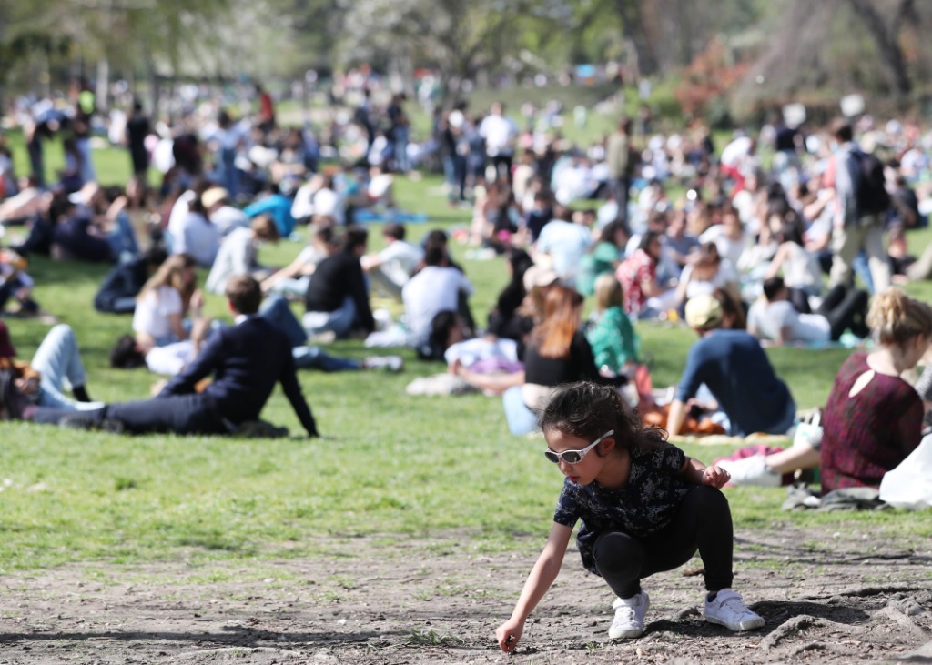 3月31日,一个小女孩在法国巴黎的蒙索公园玩耍。(新华社记者高静摄)