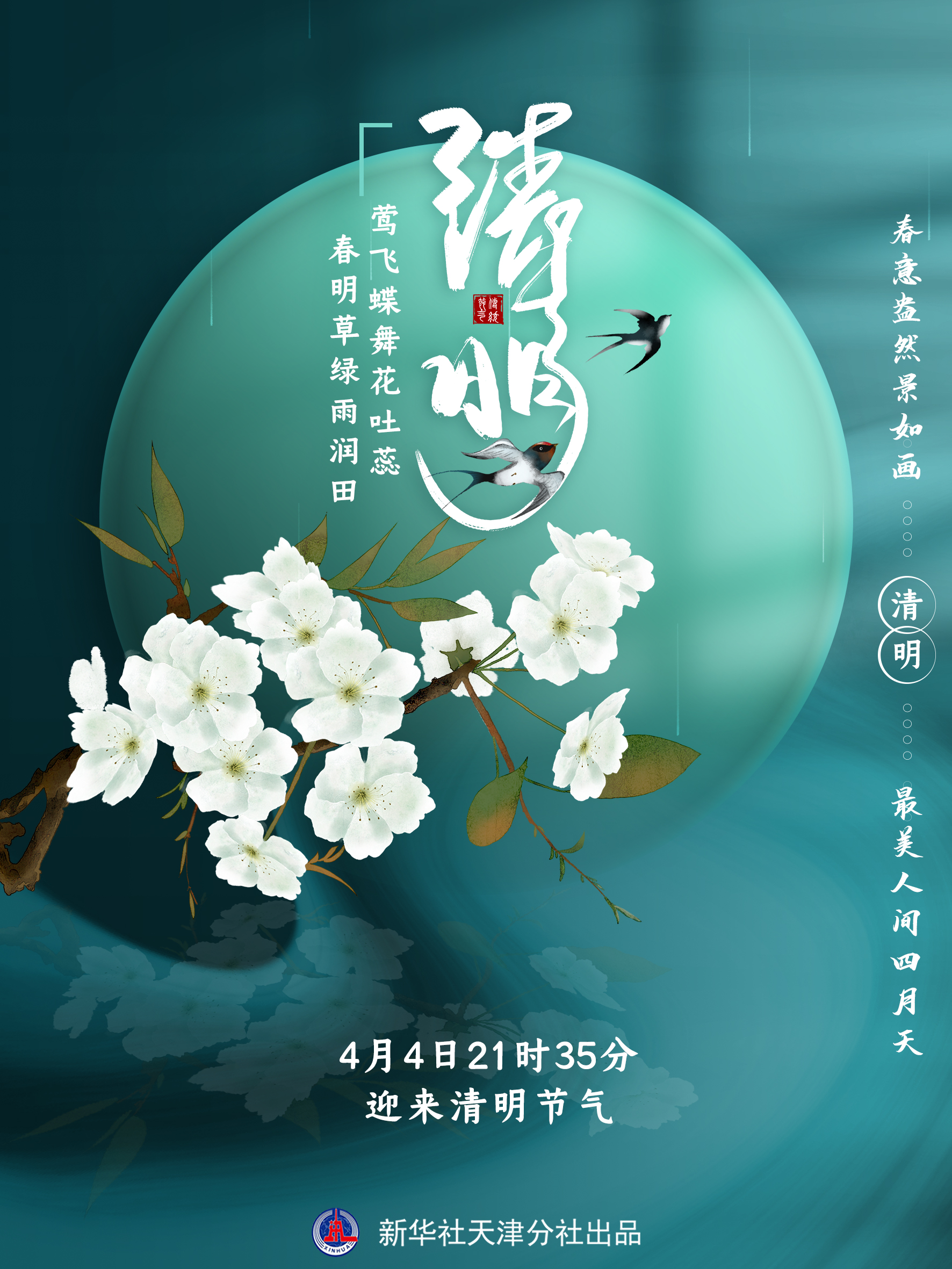 “满眼游丝兼落絮,红杏开时,一霎清明雨。”《中国天文年历》显示,北京时间4月4日21时35分将迎来清明节气。此时节,春回大地,天朗气清,桃红柳绿,花开缤纷,莺飞蝶戏,燕子归来。