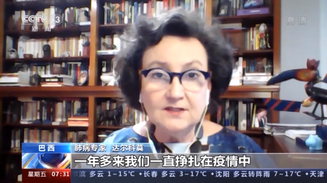 肺病专家 达尔科莫:目前巴西已经认可两款新冠疫苗,也就是中国的科兴疫苗和英国的阿斯利康疫苗,它们对在巴西发现的变异病毒是有效的。只有保证全民安全接种疫苗,同时执行严格的社会隔离,将人员流动降到最低程度,才有可能结束目前的疫情高发期。(总台记者 汤晔)