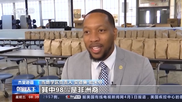 当地学区负责人 安德鲁·哈米特:杰斐逊县的学区内有大概1100名学龄儿童,其中98%是非洲裔,他们都需要免费的餐食,如果不在学校吃免费的餐食,他们可能一天都吃不到东西。