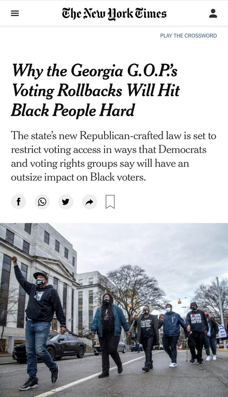 △《纽约时报》报道,佐治亚州的选举投票新规极大打击了非洲裔群体