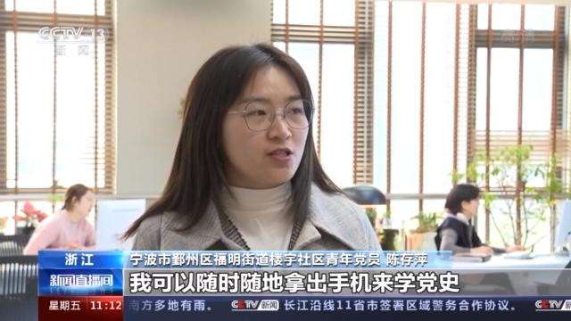 宁波市鄞州区福明街道楼宇社区青年党员 陈存萍:通过这手机直播的形式,我可以随时随地拿出手机来学习党史,对我来说是非常方便的一件事情。