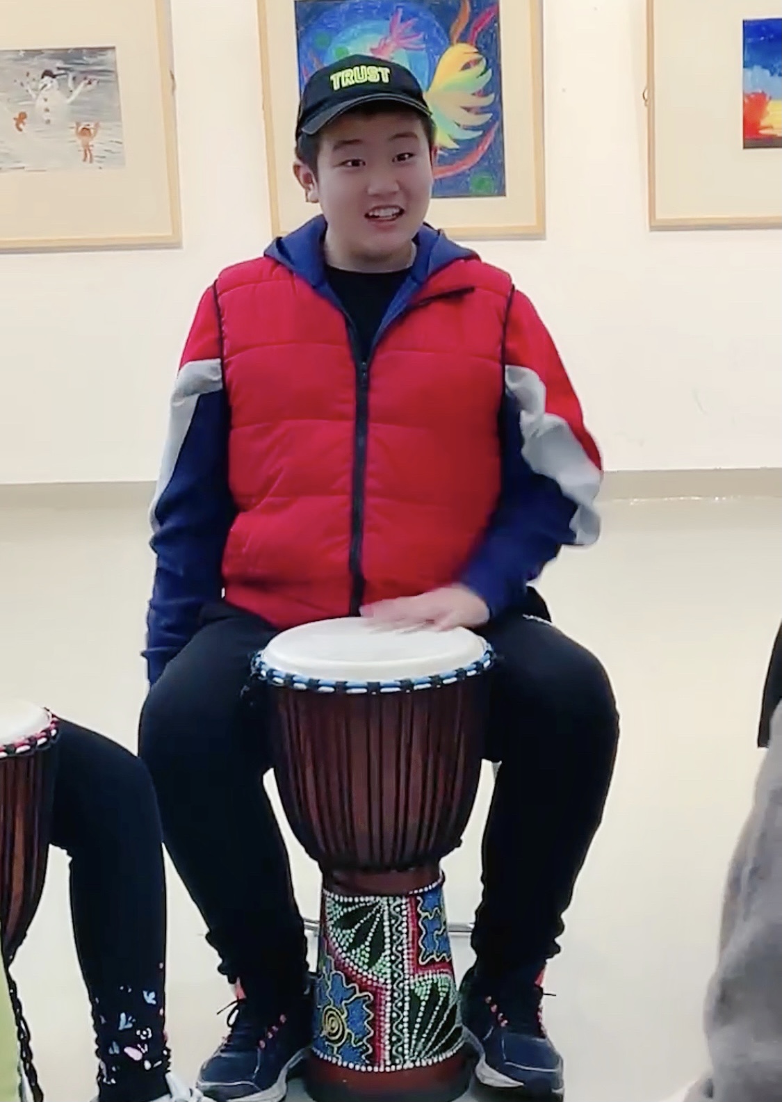 元卿在课余时间学习非洲鼓。受访者供图