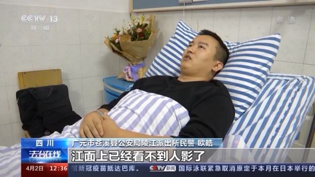 广元市苍溪县公安局陵江派出所民警 欧皓:我当时就拼尽全力向他们的位置游过去,但是当我游的时候,游到我最后看到他们的位置的时候,江面上已经看不到人影了。