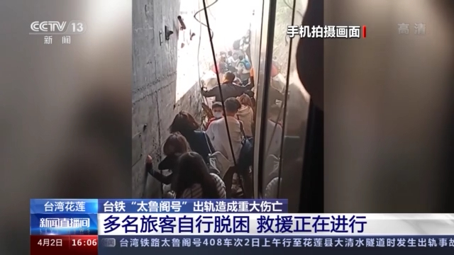 台湾铁路太鲁阁号“”408车次出轨事故,目前救援正在进行,台湾TVBS记者采访到了自行脱困的旅客,部分旅客用手机拍下了当时的画面。