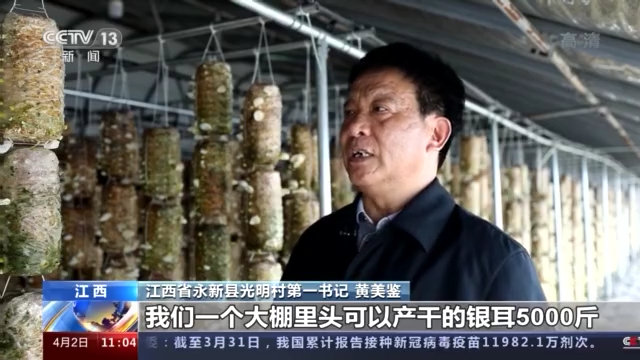 江西省永新县光明村第一书记 黄美鉴:我们一个大棚里头可以产干的银耳大概5000斤,贫困户在这里务工,就达到2000元一个月,还有分红。